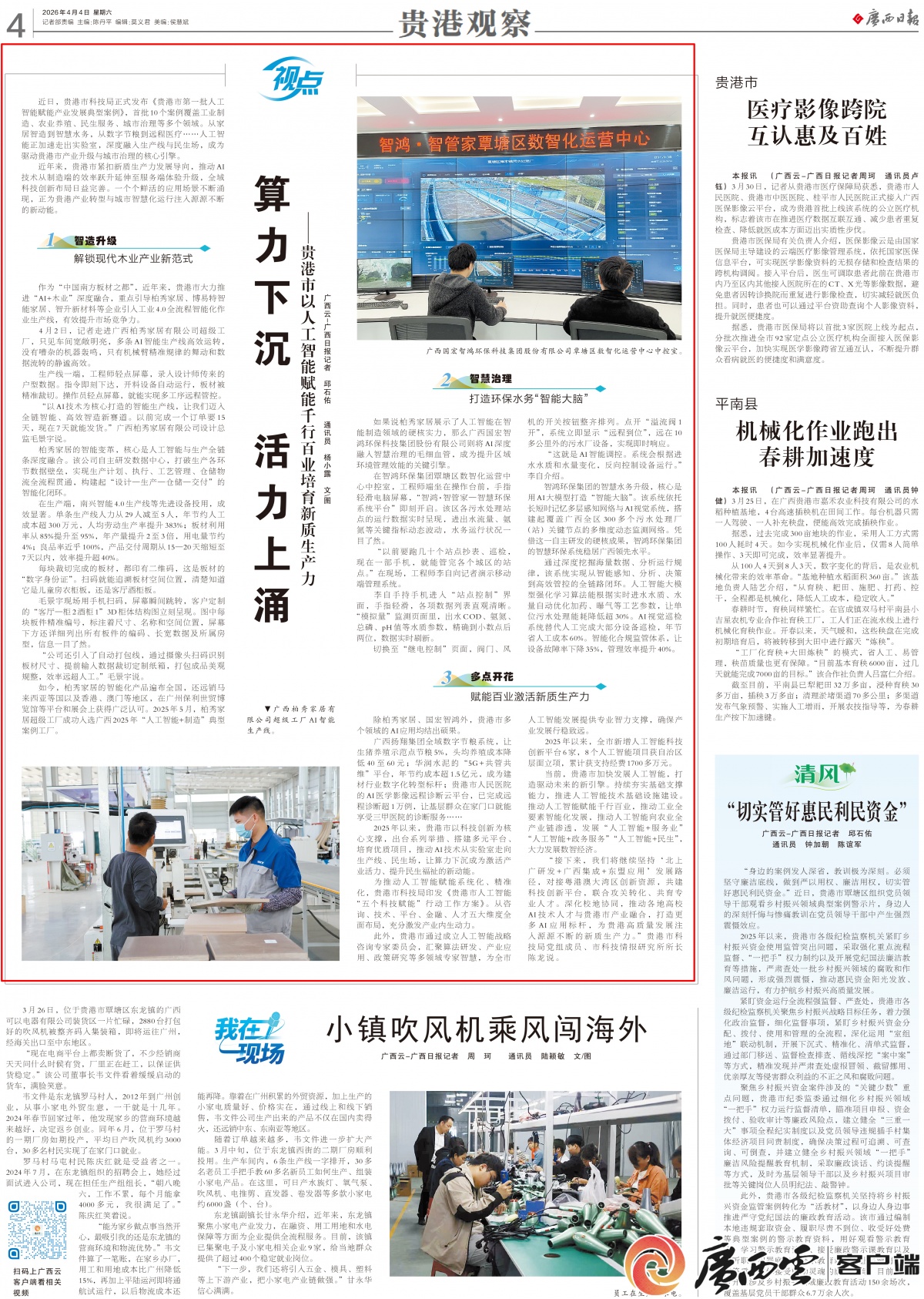 就能管完各个城区的坐点。这里办理1000头母猪只需要五六个工做人员。让我们迈入全链智能、高效智制新赛道。成为驱动贵港市财产升级取城市管理的焦点引擎。该公司自从研发数据核心,广西云-广西日报记者邱石佑 通信员 杨小露 摄柏秀家居的智能变化,扬翔集团供图2025年以来,“以AI手艺为焦点打制的智能出产线,广西柏秀家居无限公司超等工场AI智能出产线。
